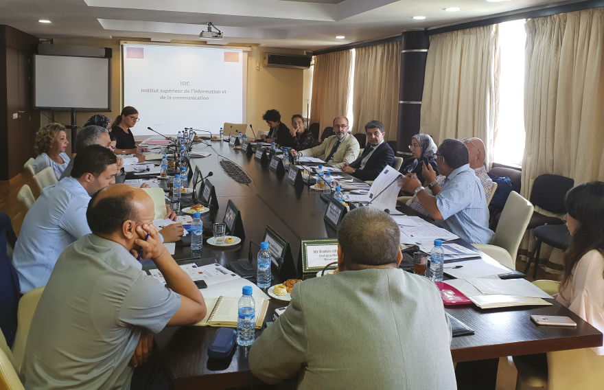 Lors du second comité de pilotage du jumelage de renforcement institutionnel du ministère de la Communication et de ses partenaires de la communication et de l’audiovisuel au Maroc en septembre 2018. © Majda Laaboudi